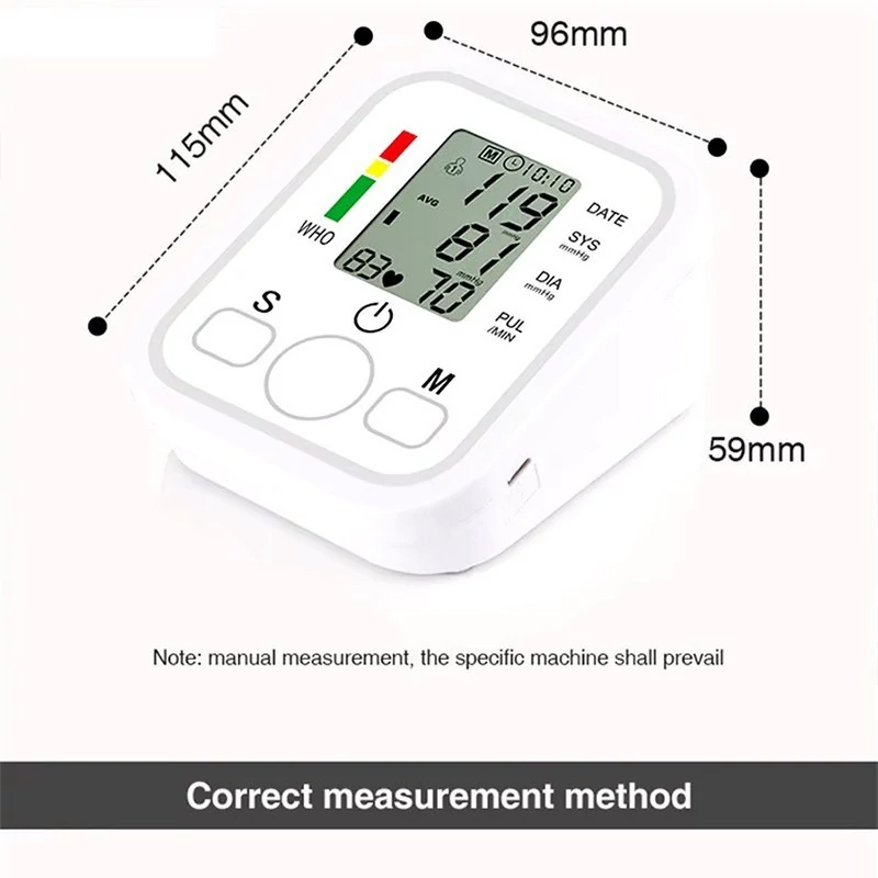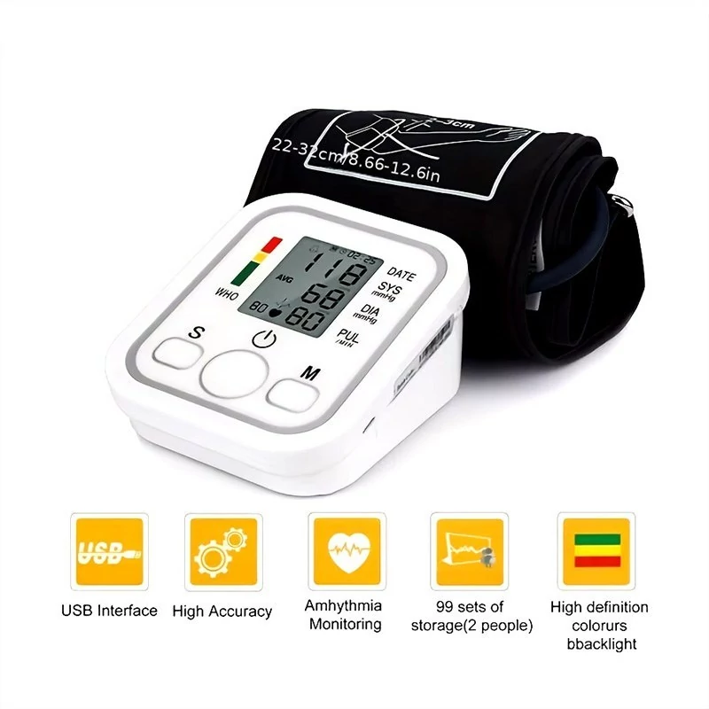 سخنگو به زبان فارسی و اعلام سطح فشارخون مناسب برای پایش فشار خون تمام سنین قابلیت اندازه گیری خودکار فشارخون و ضربان قلب دقت اندازه گیری بالا در نمایش ضربان و سنجش فشار کارکرد با کابل Type-C یا 4 عدد باتری نیم قلم (AAA) دارای صفحه نمایش LCD بزرگ تکنولوژی فشارسنج و پایش دیجیتال حافظه داخلی ضبط 99 اندازه گیری دارای امکان تنظیم پروفایل تا دو نفر دارای ابعاد 5.9 × 9.6 × 11.5 سانتی متری