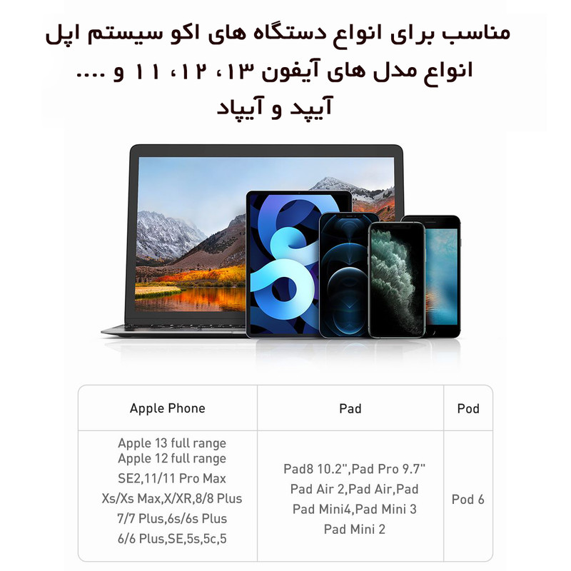 سازگار با: تمام دستگاه های دارای درگاه USB و Lightning