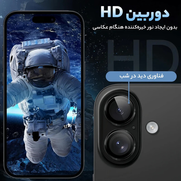 مشخصات دیگر: 9H | محافظت فوق العاده در برابر خط و خش | پوشش AR | پوشش نانو | نصب آسان | چسبندگی قوی | شفافیت و درخشندگی | مناسب برای Apple iPhone ۱۶ / ۱۶ Plus