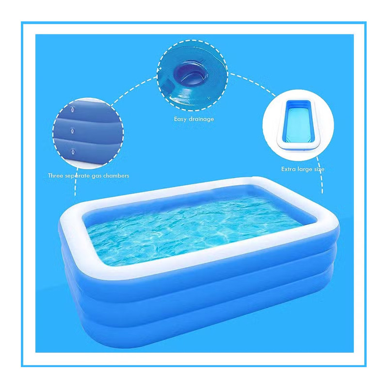 جنس PVC مقاوم | طراحی زیبا و ایمن | قابلیت نصب سریع و آسان | مناسب برای استفاده خانوادگی | مناسب برای فضای باز مانند حیاط و ویلا | دیوارههای بادی تقویتشده برای امنیت بیشتر