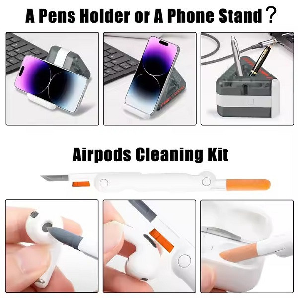 پایه نگهدارنده موبایل جا قلمی جعبه اصلی پوشش نگهداری ابزار اسلات کارت حافظه قلاب پورت شارژ پاککننده پورت Type-C