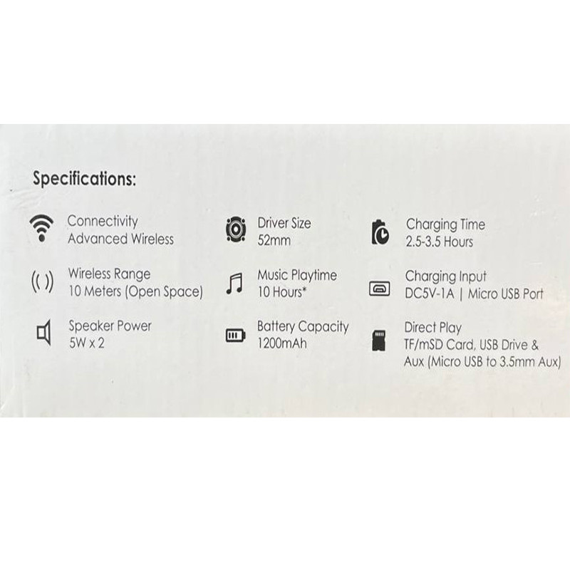 روی قسمت کناری بدنه این اسپیکر کلیدهای کنترل تعبیه شده تا بتوانید عملکرد اسپیکر را کنترل کنید. در کنار این دکمه ها نیز درگاه شارژ و درگاه اتصال رم و فلش وجود دارد. همینطور در اتصال بلوتوث برد این محصول تقریبا 10 متر است(بدون مانع و دیوار)