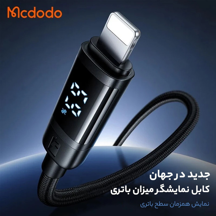 طول 1.2 متر | پشتیبانی از شدت جریان 3 آمپر | دارای کانکتور USB و لایتنینگ | دارای نمایشگر بر روی کانکتور لایتنینگ | قابلیت انتقال اطلاعات