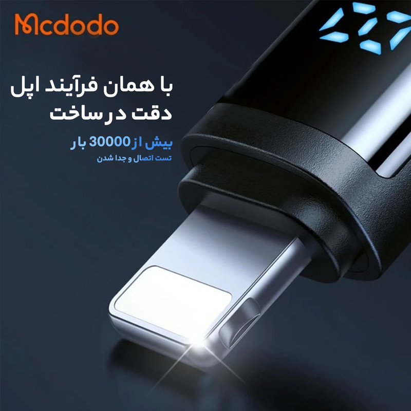 طول 1.2 متر | پشتیبانی از شدت جریان 3 آمپر | دارای کانکتور USB و لایتنینگ | دارای نمایشگر بر روی کانکتور لایتنینگ | قابلیت انتقال اطلاعات