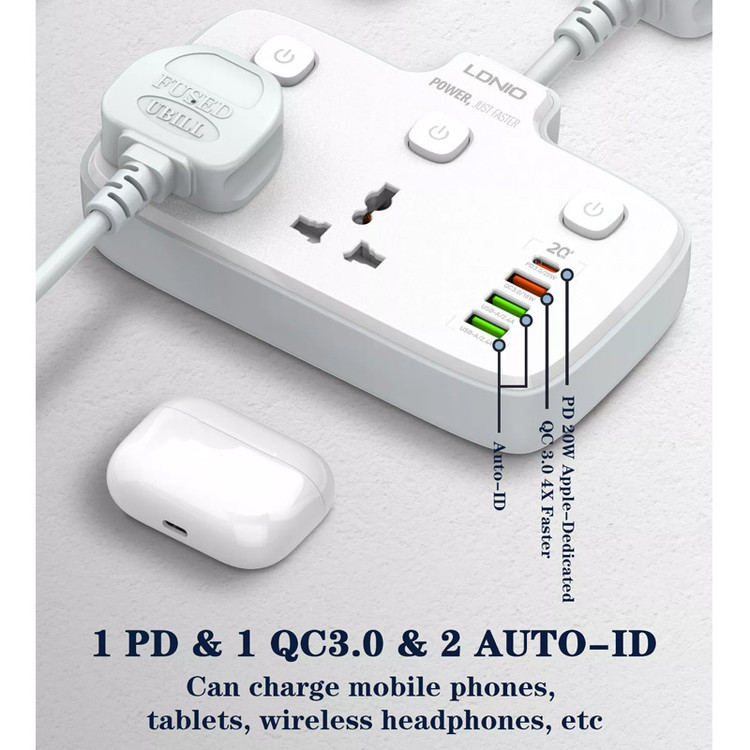 پریزها دارای توان خروجی 2500 وات از نوع Universal هستند و با دو شاخههای UK و US و EU سازگارند و شما از تبدیل بی نیاز می کنند.