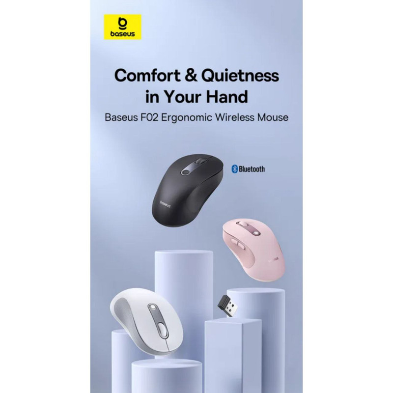 طراحی شیک و زیبای ماوس بی سیم ارگونومیک Baseus F02 جلب توجه می کند و امکان استفاده از آن را در محیط های اداری و خانگی فراهم می کند. و شکل ارگونومیک منحصر به فرد، موقعیت راحت دست را در حین استفاده تضمین می کند و از خستگی و تنش جلوگیری می کند.