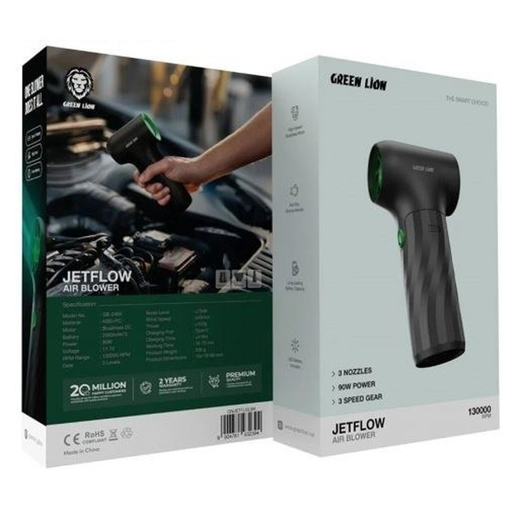 برند Green Lion همواره با ارائه محصولاتی باکیفیت و استاندارد، اعتماد کاربران زیادی را به دست آورده و Jetflow Air Blower نمونهای روشن از این تعهد به کیفیت است. این دستگاه نهتنها از نظر کارایی در سطح بالایی قرار دارد، بلکه با طراحی زیبا و کاربردی خود تجربهای متفاوت از استفاده یک ابزار تمیزکاری را به شما هدیه میدهد.