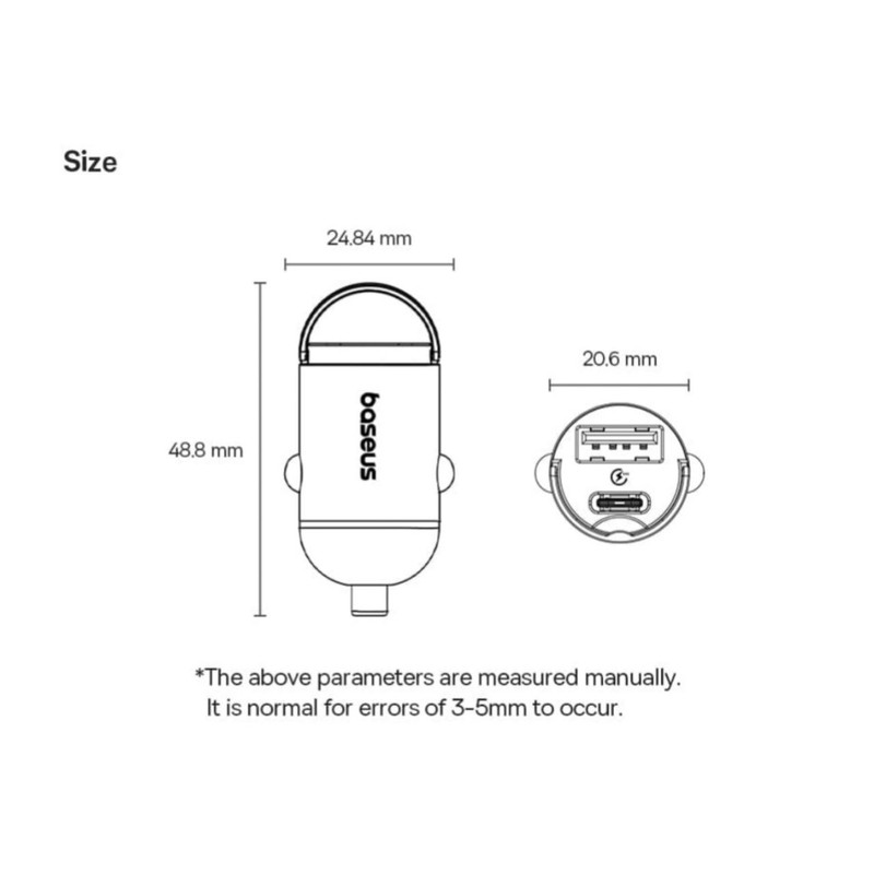 شارژر فندکی Baseus دارای دو پورت خروجی است که شامل یک پورت USB و یک پورت تایپ سی میباشد. این ویژگی به شما این امکان را میدهد که دو دستگاه مختلف را به طور همزمان شارژ کنید. برای مثال، شما میتوانید گوشی هوشمند خود را از طریق پورت USB و دستگاههای دیگر مانند تبلت یا دوربین ورزشی را از طریق پورت تایپ سی شارژ کنید. این قابلیت به ویژه در مواقعی که چندین دستگاه به شارژ نیاز دارند، بسیار کارآمد و مفید است.وجود دو پورت به شما این امکان را میدهد که نیازی به استفاده از چندین شارژر نداشته باشید و با استفاده از این شارژر کوچک و جمعوجور، چندین دستگاه را به صورت همزمان شارژ کنید.