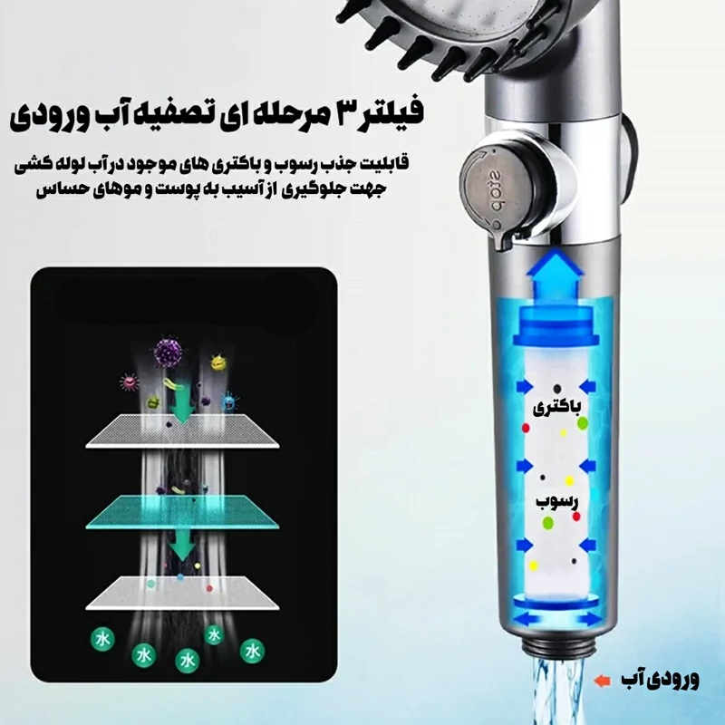 به همراه فیلتر تصفیه آب داخلی جهت جذب باکتری و رسوبات آب لوله کشی
