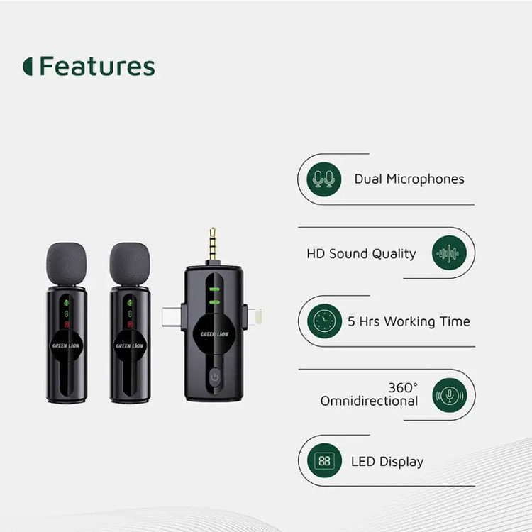 ست میکروفن بی سیم گرین لاین مدل GM-80X با درگاه اتصال لایتنینگ/AUX/USB-C