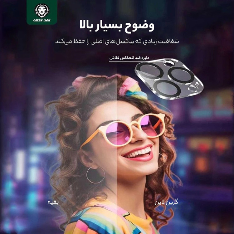 مشخصات دیگر: شیشه محافظ مقاوم 9H | پوشش ضد تابش نور | حفظ کیفیت و شفافیت دوربین | جلوگیری از افتادن خط و خش بروی لنزها