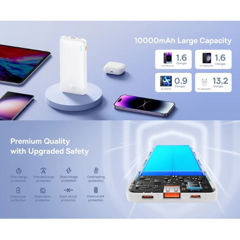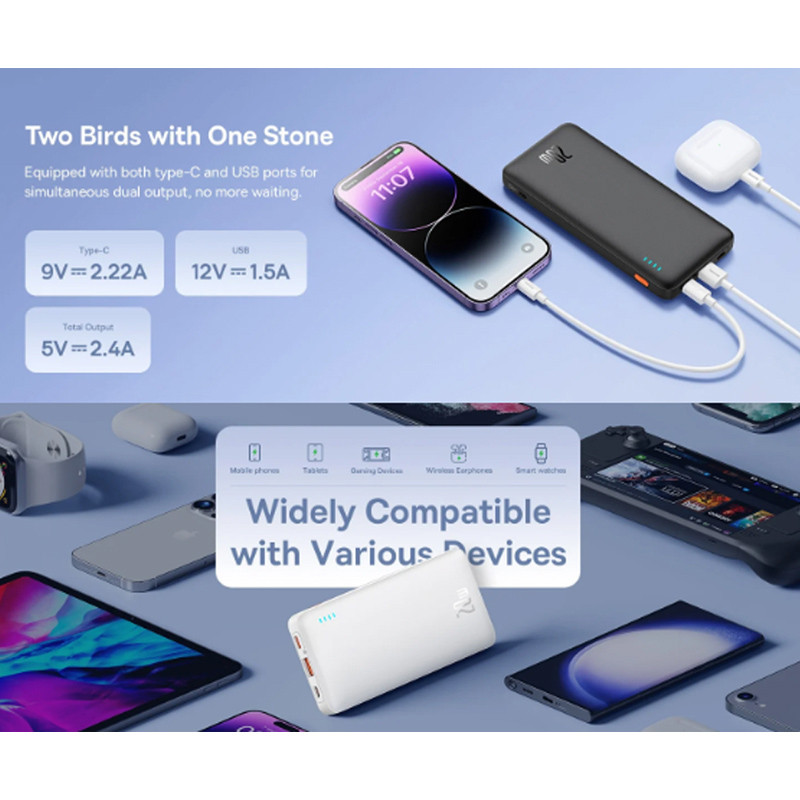 مشخصات فنی: مشخصات فنی این محصول شامل: USB-A Out put : 5V=2.4A | 9V=2A | 12V=1.5A USB-C out put: 5V=2.4A | 9V-2.22A | 12V=1.5A Micro USB Input : 5V=2A | 9V=2A USB-C Input : 5V=3A | 9V=2A | 12V=1.5A