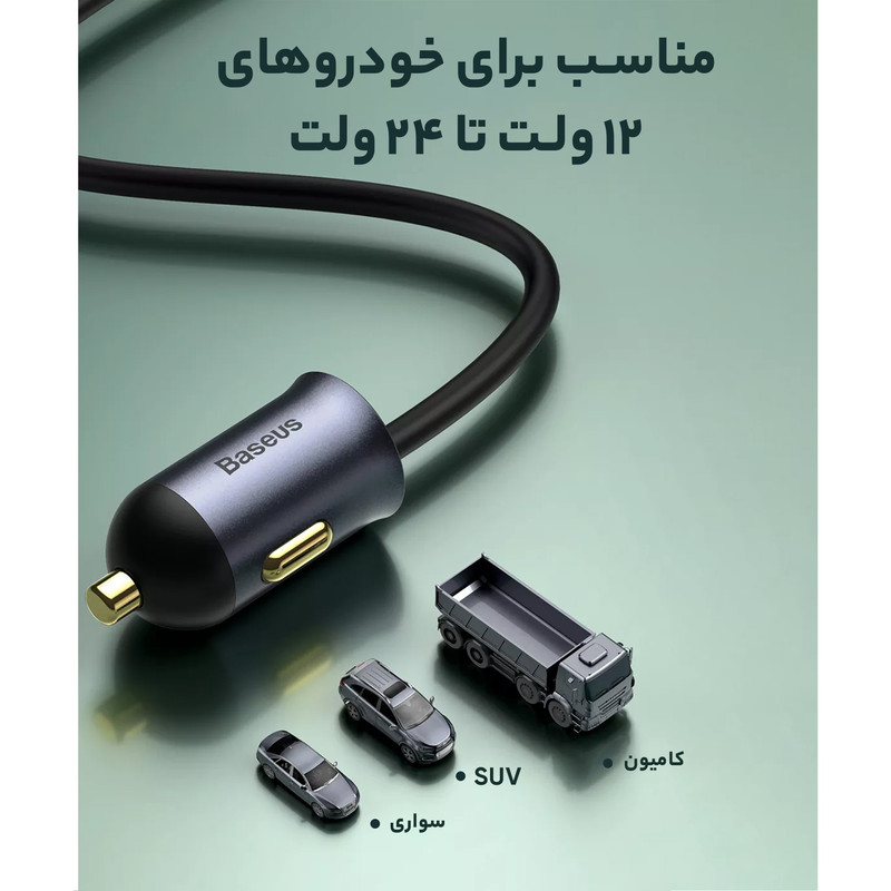 استفاده در صندلیهای عقب: کابل 1.5 متری به شما این امکان را میدهد که تقسیمکننده را به راحتی به صندلیهای عقب منتقل کنید تا مسافران عقب نیز بتوانند دستگاههای خود را شارژ کنند.