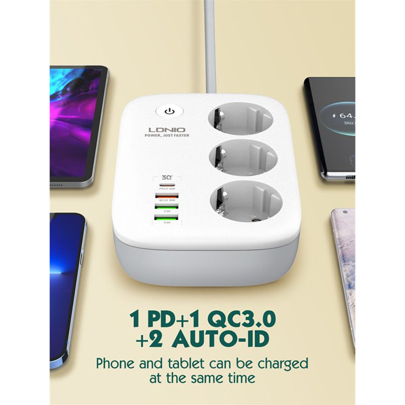 گروه تجاری LDNIO یک شرکت تامین کننده لوازم جانبی در جهان است که به عنوان یکی از بزرگترین تامین کنندهای لوازم جانبی الکترونیکی در جهان شناخته می شود. یکی از پر فروش ترین کالاهای این شرکت چند راهی برق الدینیو مدل Smart است. امروزه برای اینکه بتوانیم چند دستگاه را روی میز کار یا در منزل به برق متصل کنیم، نیاز به چندین پریز و درگاه داریم. استفاده از یک چندراهی با کیفیت علاوه بر اینکه نیاز ما به پورت های متنوع را رفع می کند، سبب مرتب تر شدن میز کار ما نیز می شود. برند الدینیو برای حل این مساله محصول چند راهی برق مدل Smart را روانه بازار کرده است که تقریبا تمامی افراد برای مدیریت وسایل الکترونیکی که به برق نیاز دارند از آن میتوانند استفاده کنند. بر روی بدنه ی چند راهی برق الدینیو مدل Smart سه خروجی برق، سه پورت USB و یک پورت تایپ سی تعبیه شده است و شما میتوانید به طور همزمان چندین دستگاه را با آن شارژ کنید.